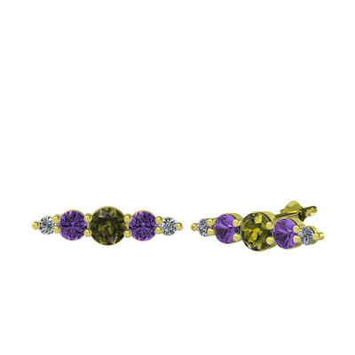Peridot, ametist ve pırlanta 14 ayar altın küpe (0.03 karat)