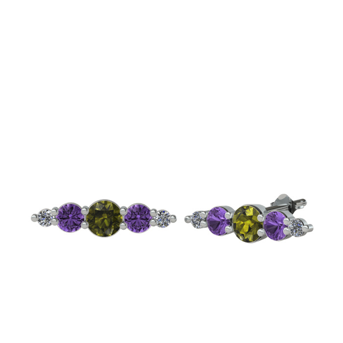 Peridot, ametist ve pırlanta 18 ayar beyaz altın küpe (0.03 karat)