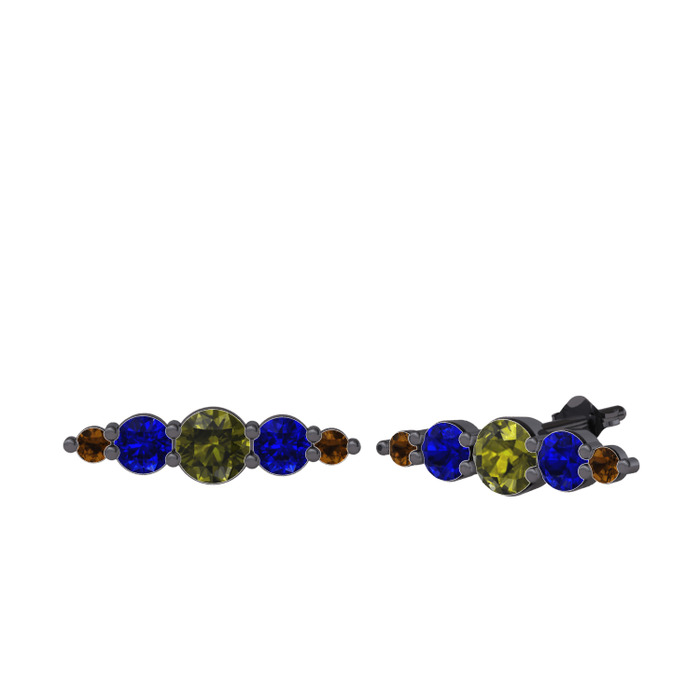 Peridot, lab safir ve dumanlı kuvars 925 ayar siyah rodyum kaplama gümüş küpe