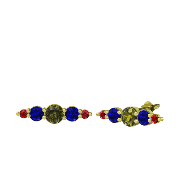 Peridot, lab safir ve garnet 14 ayar altın küpe
