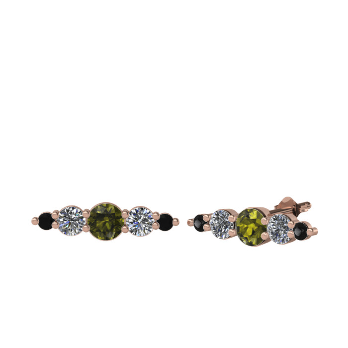 Peridot, pırlanta ve siyah zirkon 18 ayar rose altın küpe (0.12 karat)