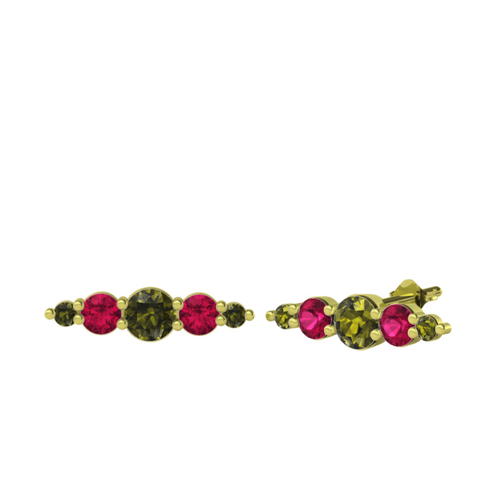 Peridot ve rodolit garnet 18 ayar altın küpe
