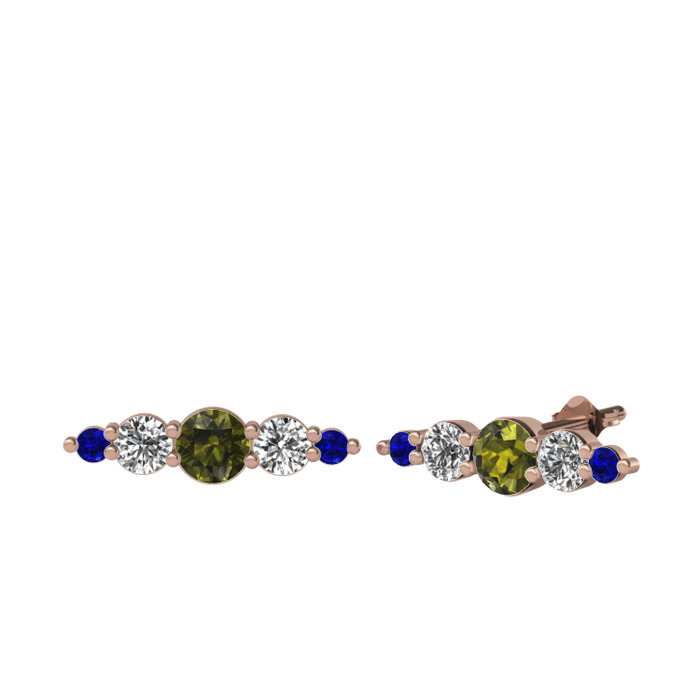 Peridot, swarovski ve lab safir 18 ayar rose altın küpe