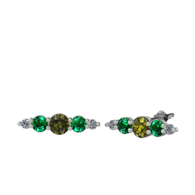 Peridot, yeşil kuvars ve pırlanta 18 ayar beyaz altın küpe (0.03 karat)