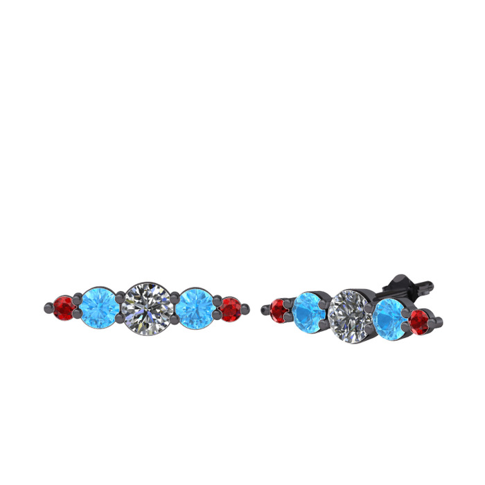 Pırlanta, akuamarin ve garnet 925 ayar siyah rodyum kaplama gümüş küpe (0.32 karat)