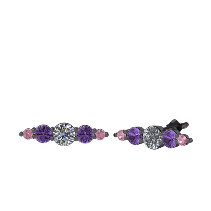 Pırlanta, ametist ve pembe kuvars 925 ayar siyah rodyum kaplama gümüş küpe (0.32 karat)