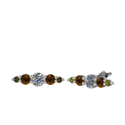 Pırlanta, dumanlı kuvars ve peridot 925 ayar gümüş küpe (0.32 karat)