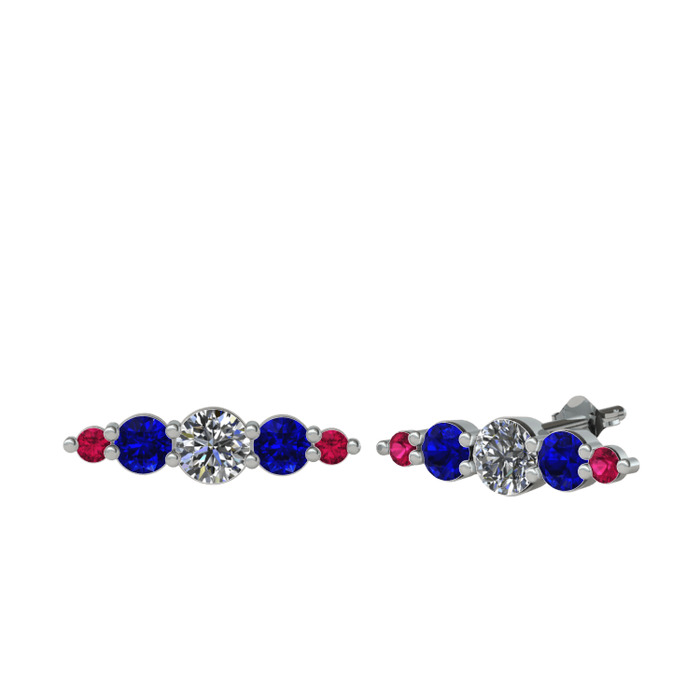 Pırlanta, lab safir ve rodolit garnet 14 ayar beyaz altın küpe (0.32 karat)