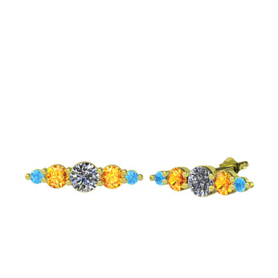 Pırlanta, sitrin ve akuamarin 14 ayar altın küpe (0.32 karat)