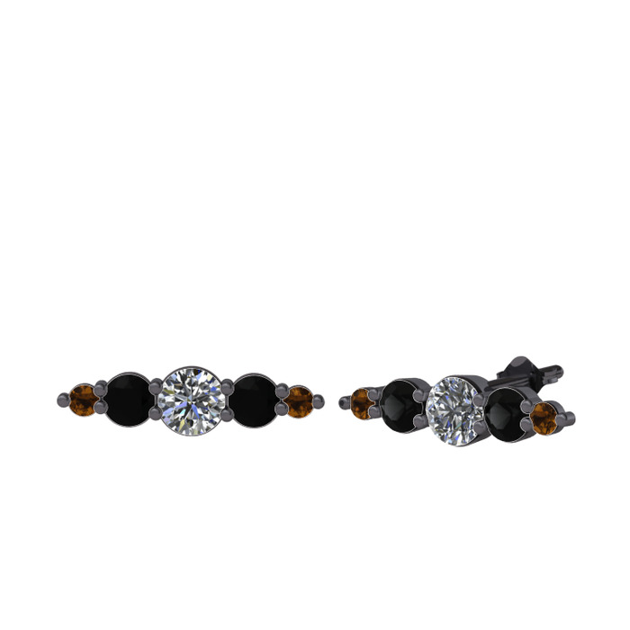 Pırlanta, siyah zirkon ve dumanlı kuvars 925 ayar siyah rodyum kaplama gümüş küpe (0.32 karat)