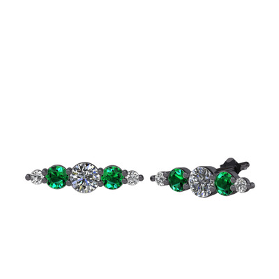 Pırlanta, yeşil kuvars ve swarovski 925 ayar siyah rodyum kaplama gümüş küpe (0.32 karat)
