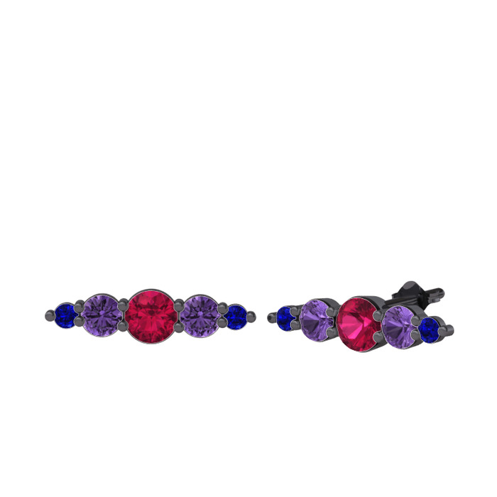 Rodolit garnet, ametist ve lab safir 925 ayar siyah rodyum kaplama gümüş küpe