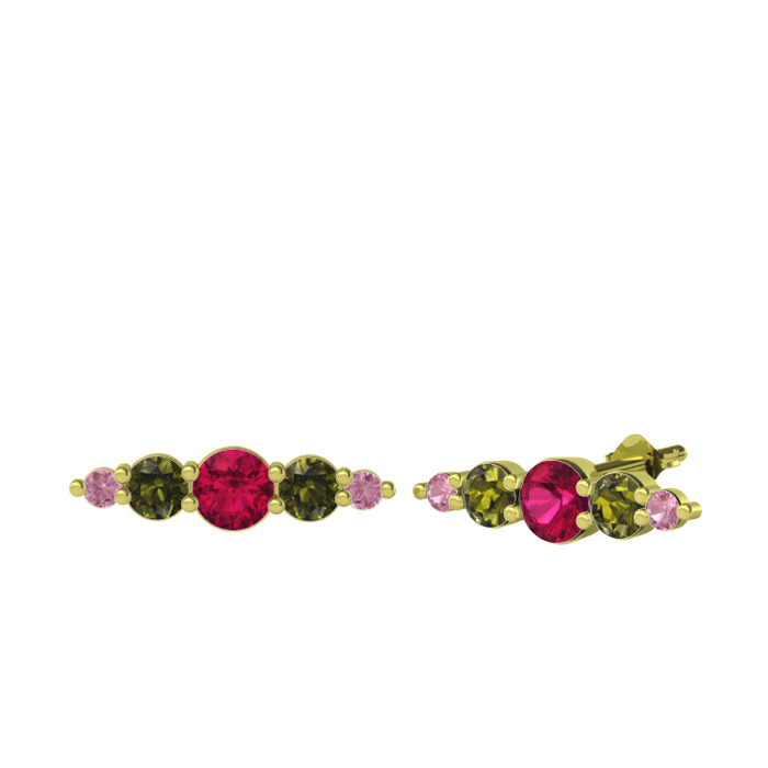 Rodolit garnet, peridot ve pembe kuvars 18 ayar altın küpe