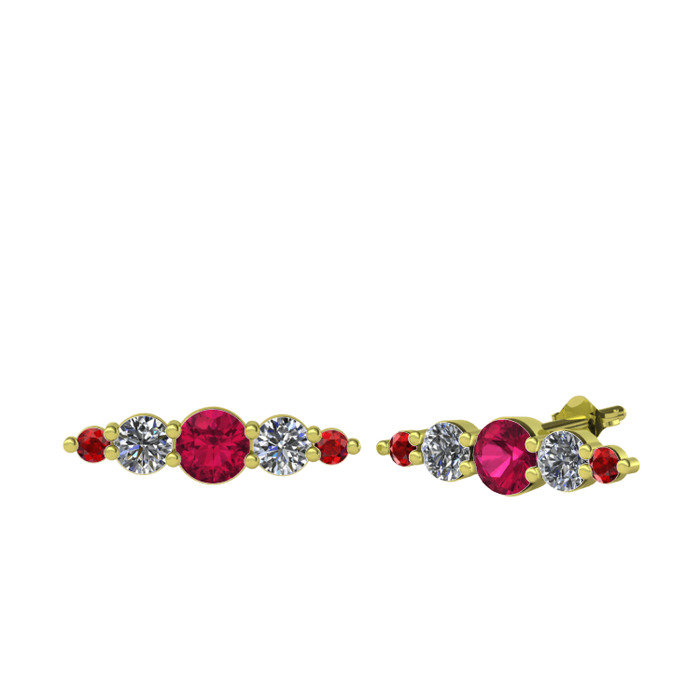 Rodolit garnet, pırlanta ve garnet 14 ayar altın küpe (0.12 karat)
