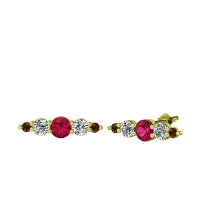 Rodolit garnet, swarovski ve dumanlı kuvars 18 ayar altın küpe
