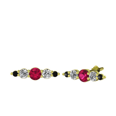 Rodolit garnet, swarovski ve siyah zirkon 925 ayar altın kaplama gümüş küpe