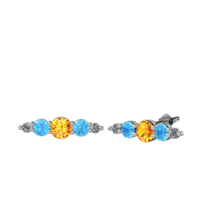 Sitrin, akuamarin ve pırlanta 18 ayar beyaz altın küpe (0.03 karat)
