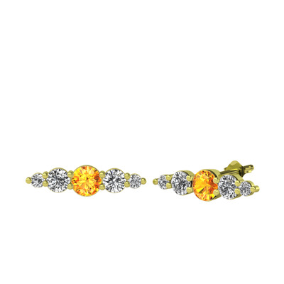 Sitrin ve beyaz zirkon 925 ayar altın kaplama gümüş küpe