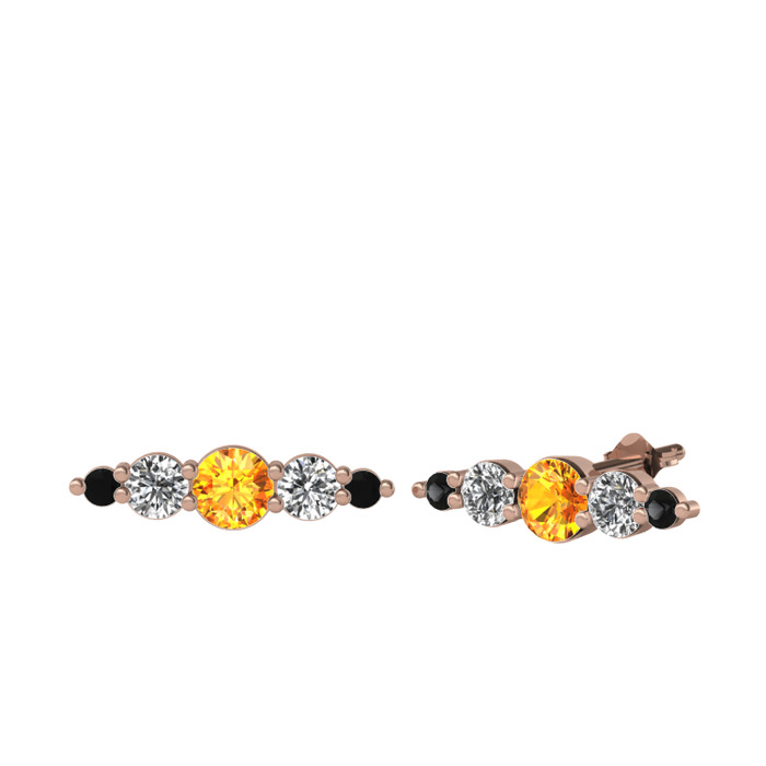 Sitrin, beyaz zirkon ve siyah zirkon 14 ayar rose altın küpe