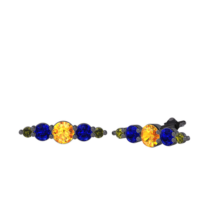 Sitrin, lab safir ve peridot 925 ayar siyah rodyum kaplama gümüş küpe