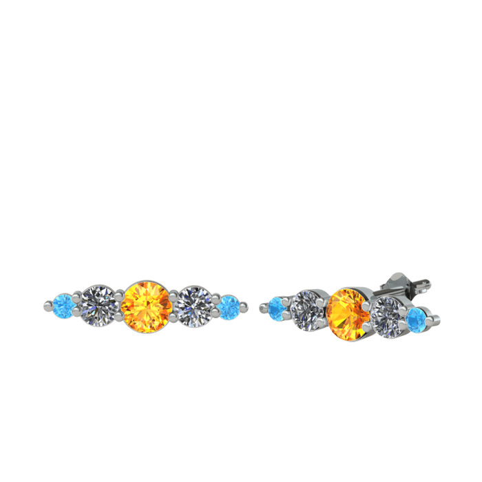 Sitrin, pırlanta ve akuamarin 925 ayar gümüş küpe (0.12 karat)