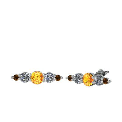 Sitrin, pırlanta ve dumanlı kuvars 925 ayar gümüş küpe (0.12 karat)