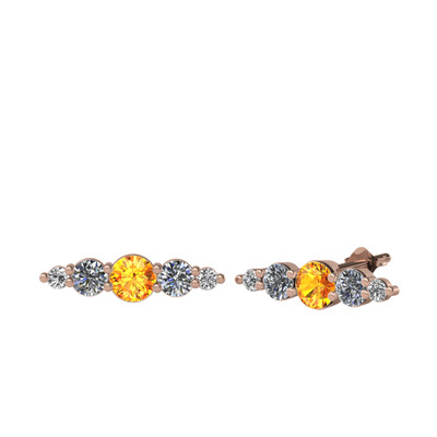 Sitrin, pırlanta ve swarovski 14 ayar rose altın küpe (0.12 karat)