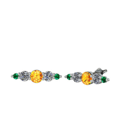 Sitrin, pırlanta ve yeşil kuvars 8 ayar beyaz altın küpe (0.12 karat)