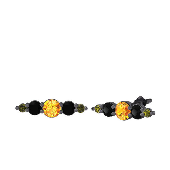 Sitrin, siyah zirkon ve peridot 925 ayar siyah rodyum kaplama gümüş küpe