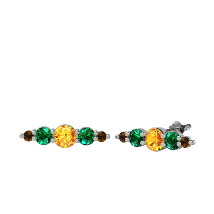 Sitrin, yeşil kuvars ve dumanlı kuvars 925 ayar gümüş küpe