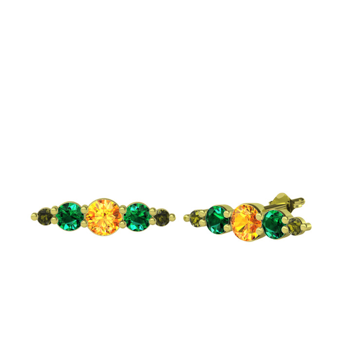 Sitrin, yeşil kuvars ve peridot 14 ayar altın küpe