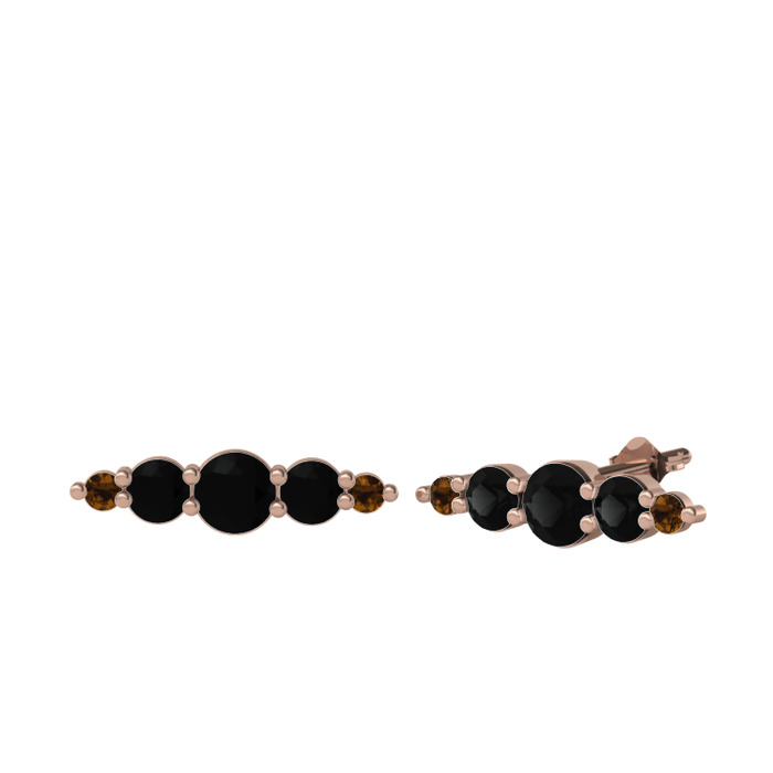 Siyah zirkon ve dumanlı kuvars 8 ayar rose altın küpe