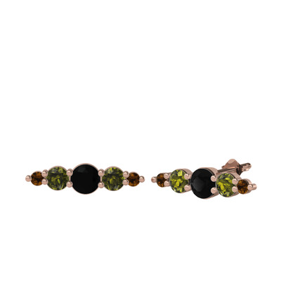 Siyah zirkon, peridot ve dumanlı kuvars 18 ayar rose altın küpe