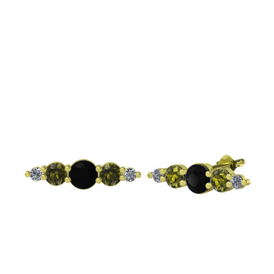 Siyah zirkon, peridot ve pırlanta 925 ayar altın kaplama gümüş küpe (0.03 karat)