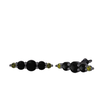 Siyah zirkon ve peridot 925 ayar siyah rodyum kaplama gümüş küpe