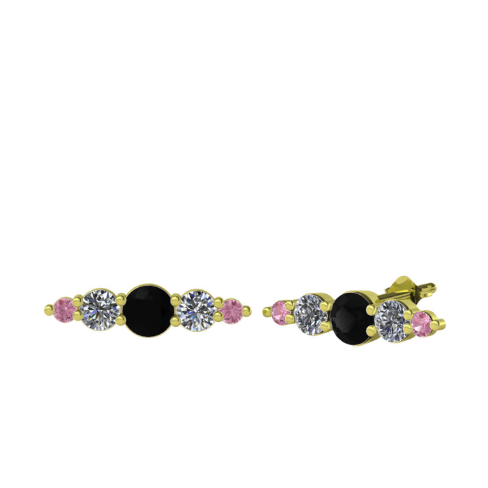 Siyah zirkon, pırlanta ve pembe kuvars 925 ayar altın kaplama gümüş küpe (0.12 karat)
