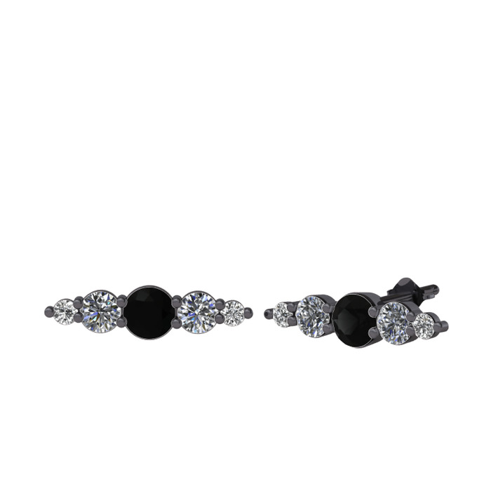 Siyah zirkon, pırlanta ve swarovski 925 ayar siyah rodyum kaplama gümüş küpe (0.12 karat)