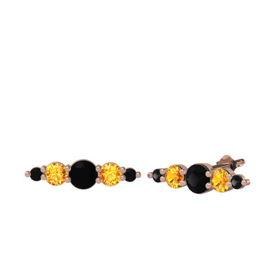 Siyah zirkon ve sitrin 925 ayar rose altın kaplama gümüş küpe