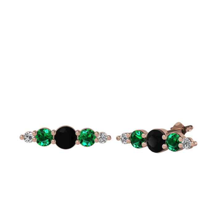 Siyah zirkon, yeşil kuvars ve swarovski 14 ayar rose altın küpe