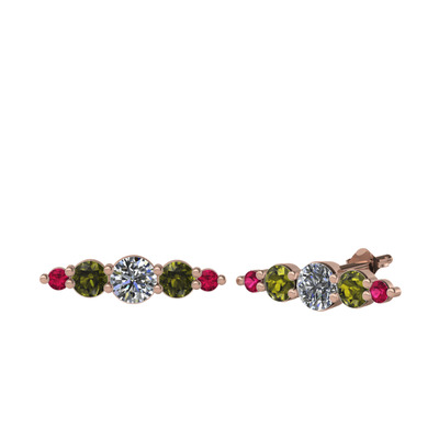 Swarovski, peridot ve rodolit garnet 925 ayar rose altın kaplama gümüş küpe