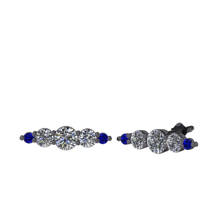 Swarovski, pırlanta ve lab safir 925 ayar siyah rodyum kaplama gümüş küpe (0.12 karat)