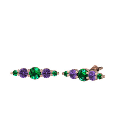 Yeşil kuvars ve ametist 18 ayar rose altın küpe