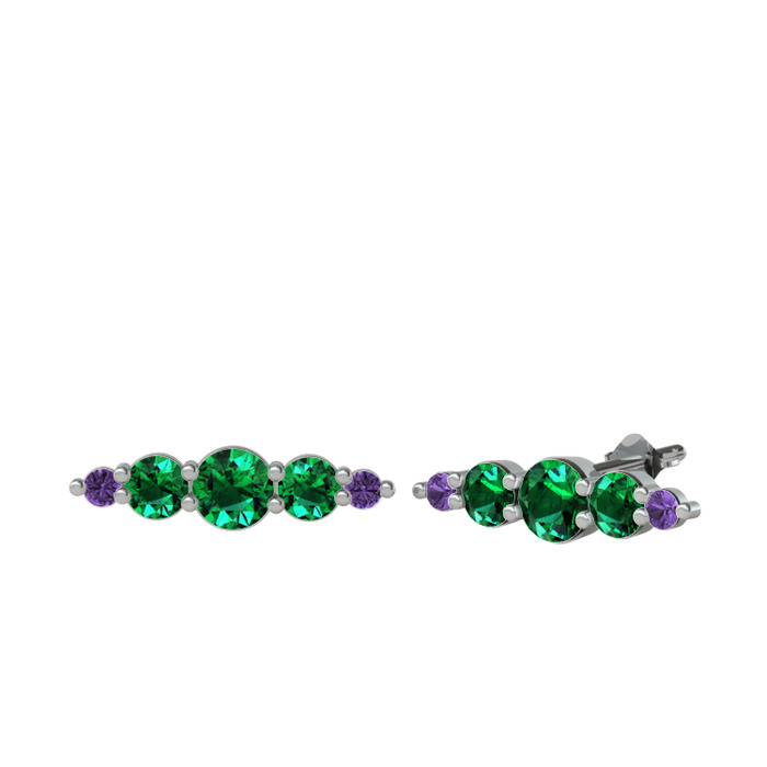 Yeşil kuvars ve ametist 8 ayar beyaz altın küpe