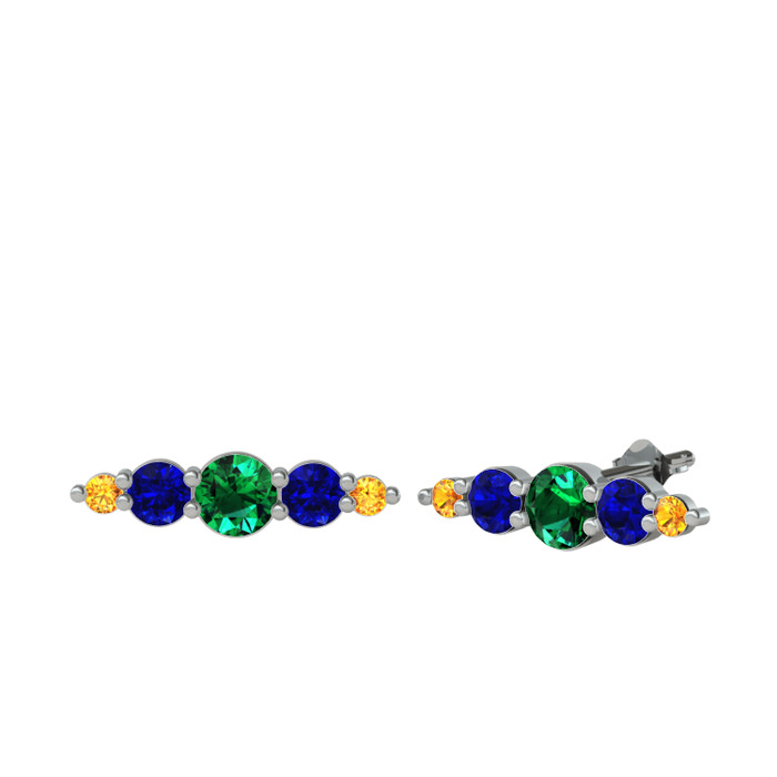 Yeşil kuvars, lab safir ve sitrin 18 ayar beyaz altın küpe