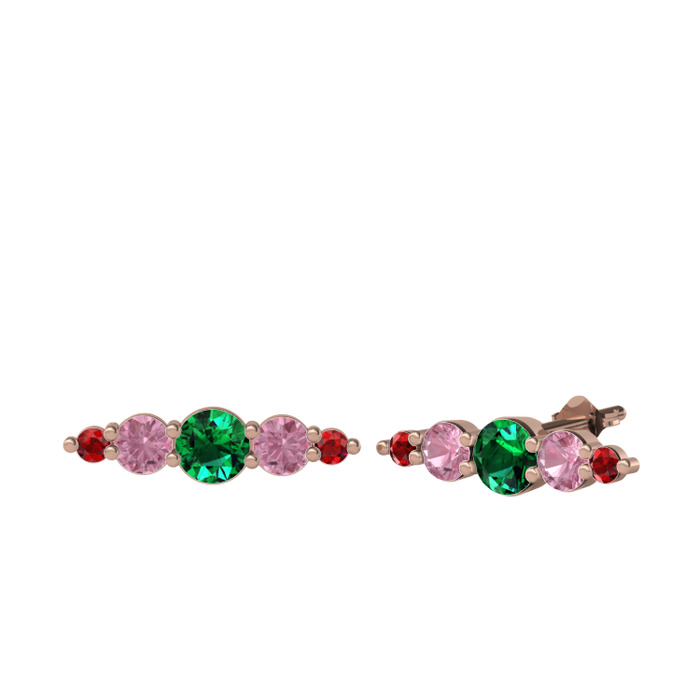 Yeşil kuvars, pembe kuvars ve garnet 14 ayar rose altın küpe