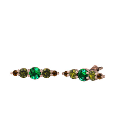 Yeşil kuvars, peridot ve dumanlı kuvars 18 ayar rose altın küpe