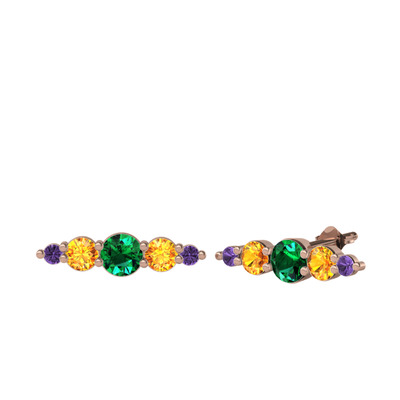 Yeşil kuvars, sitrin ve ametist 925 ayar rose altın kaplama gümüş küpe
