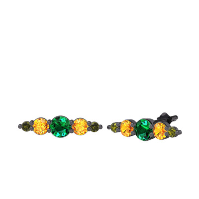 Yeşil kuvars, sitrin ve peridot 925 ayar siyah rodyum kaplama gümüş küpe