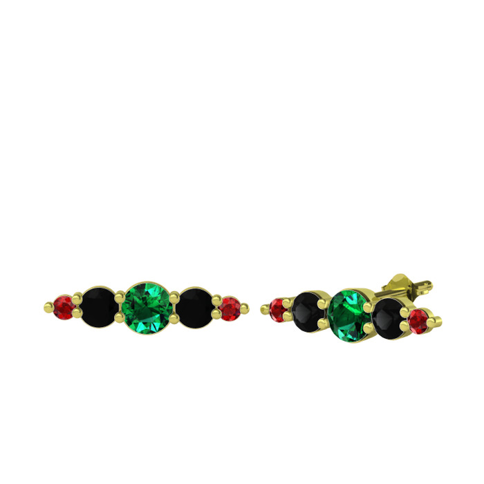 Yeşil kuvars, siyah zirkon ve garnet 8 ayar altın küpe