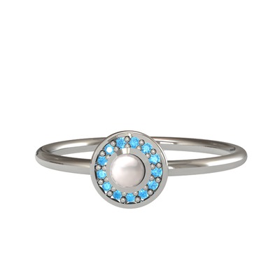 Inci ve akuamarin 18 ayar beyaz altın yüzük